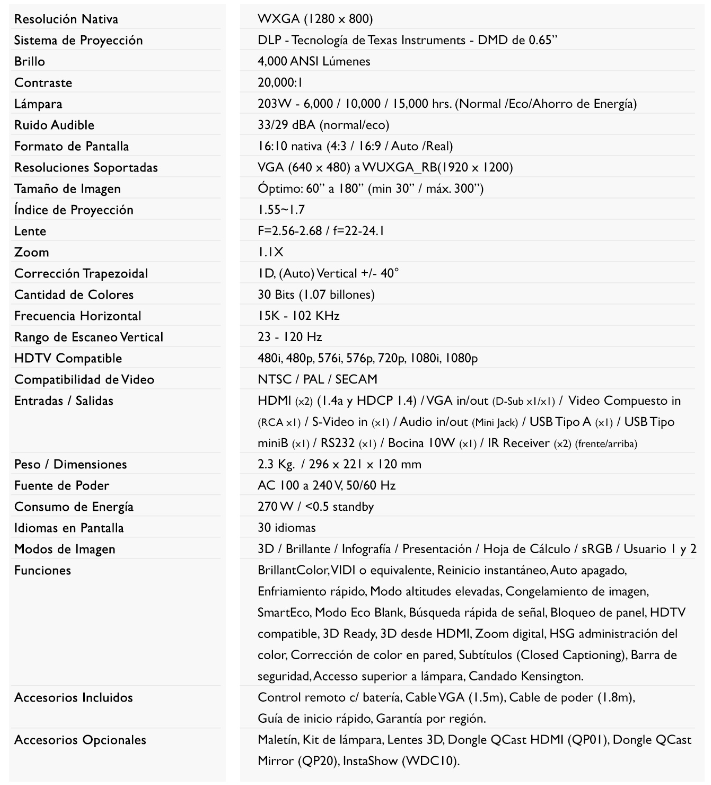 Brillo de 4000 lúmenes para presentaciones claras en la mayoría de entornos de oficina