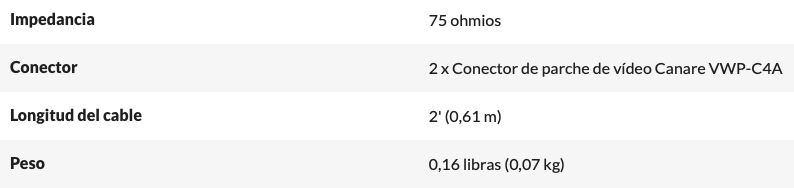 Canare 2FT video patch cable (W.E.STANDARD) Cable de Video de 60cm con conectores