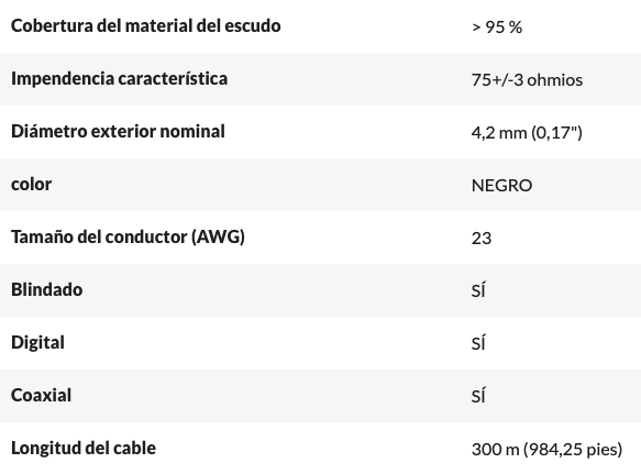 Canare Cable Coaxial de Vídeo Digital L-2.5CHD negro (300m) Cable de Video