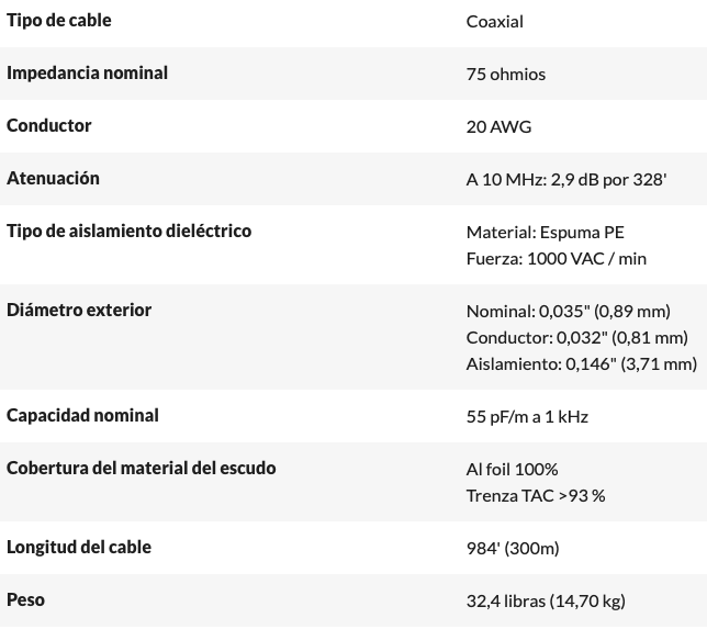 CANARE Cable coaxial L-4CFB RG59 HD-SDI azul (300m) Cable Coaxial