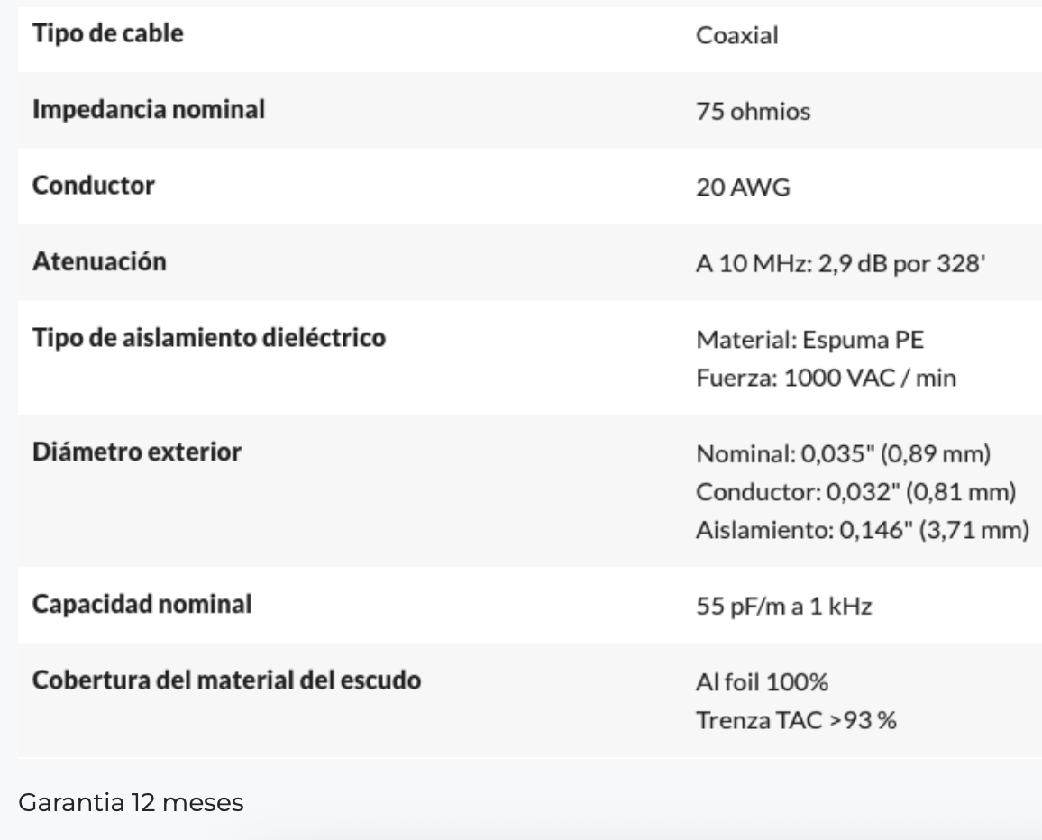 - Trenza de cobre estañado + pantalla 100% lámina