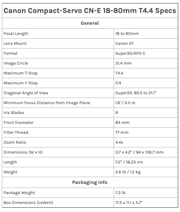 Canon CN-E 18-80mm T4.4 COMPACT-SERVO Cinema Zoom Lens (EF Mount) Lente estilo cinematográfico