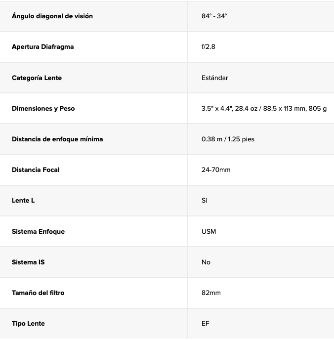 Canon Lente montura EF 24-70mm f/2.8L II USM Montura EF Full Frame