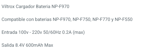 Cargador para la batería NP F-970 Alternativa Para Equipos Viltrox.