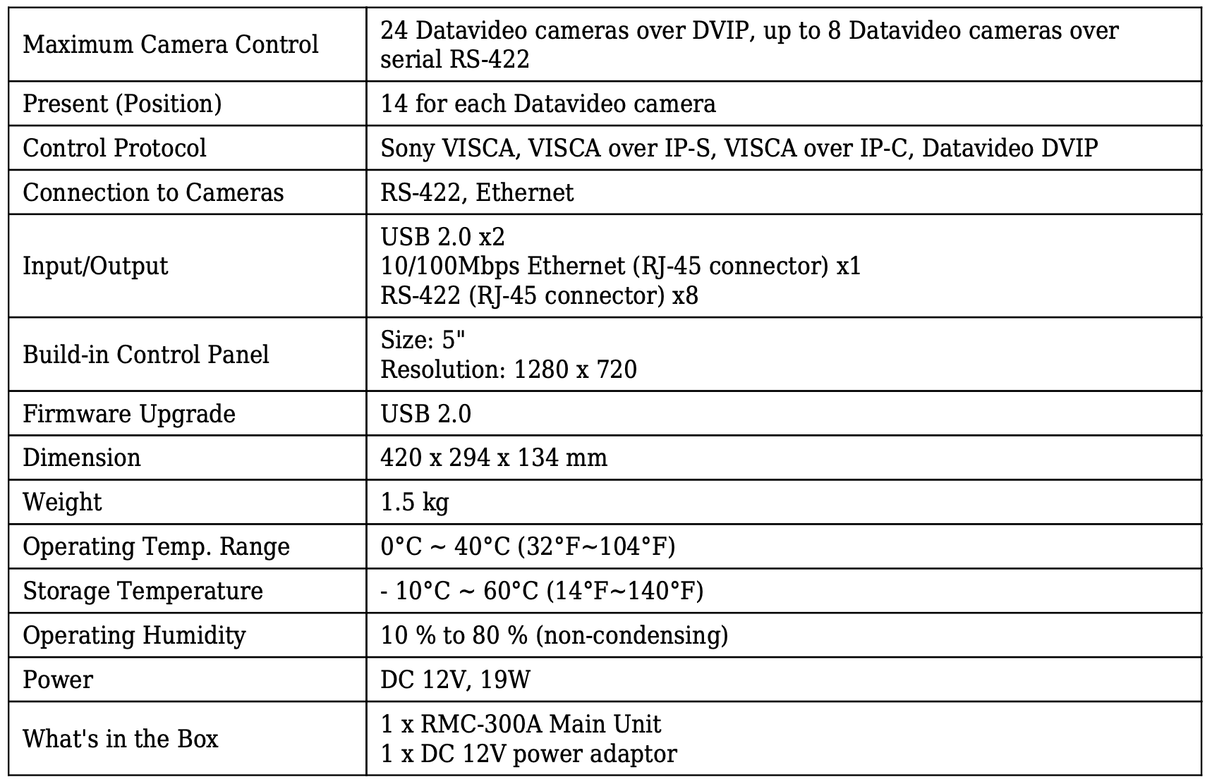 Datavideo RMC-300A Control Remoto para PTZ (UNIDAD DE DEMO)