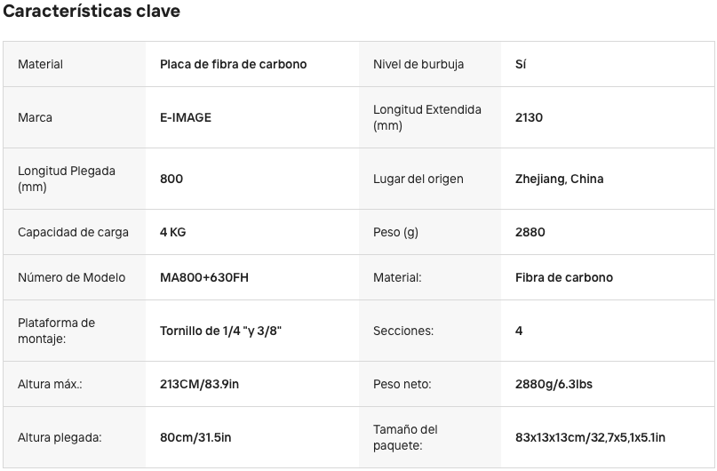E-IMAGE monopié de vídeo profesional MA800 + 630FH Monopié de vídeo profesional