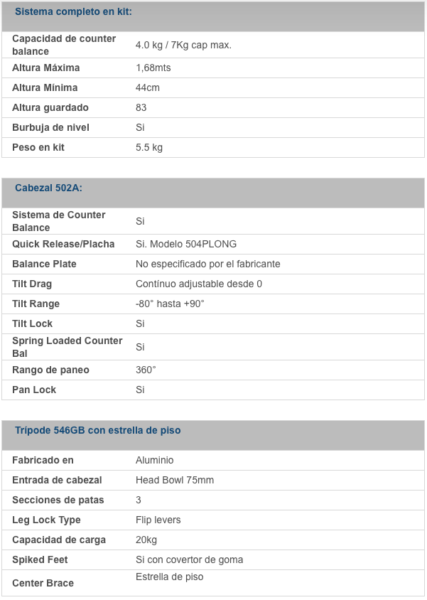 KIT Cabezal 502MVH02A+trípode 546GB+bolso, Compatible Dolly 127VS Tripode para camaras profesionales
