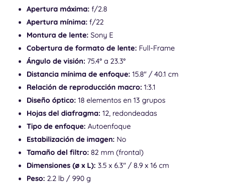 Lente Sigma 28-105mm f/2.8 DG DN Art - Sony E Full Frame Lente Montura E